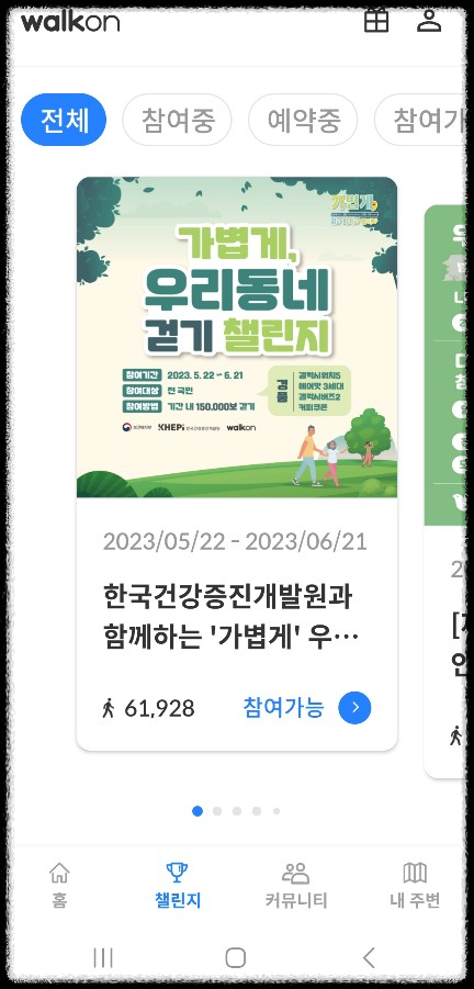 지역별 보건소, 국민건강보험공단 등 참여할 수 있는 챌린지가 많습니다.