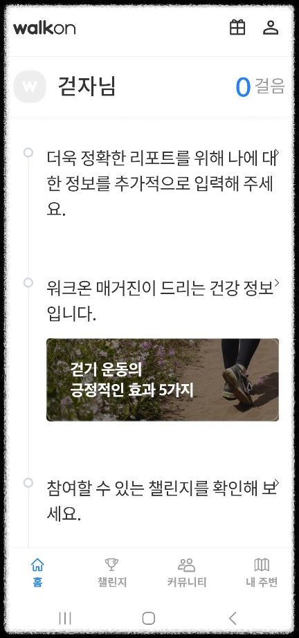 매일 산책을 하는데 이제야 워크온 앱에 가입을 했습니다. 운동도 하고 선물도 받을 수 있는 일석이조의 앱을 소개해 드리겠습니다.