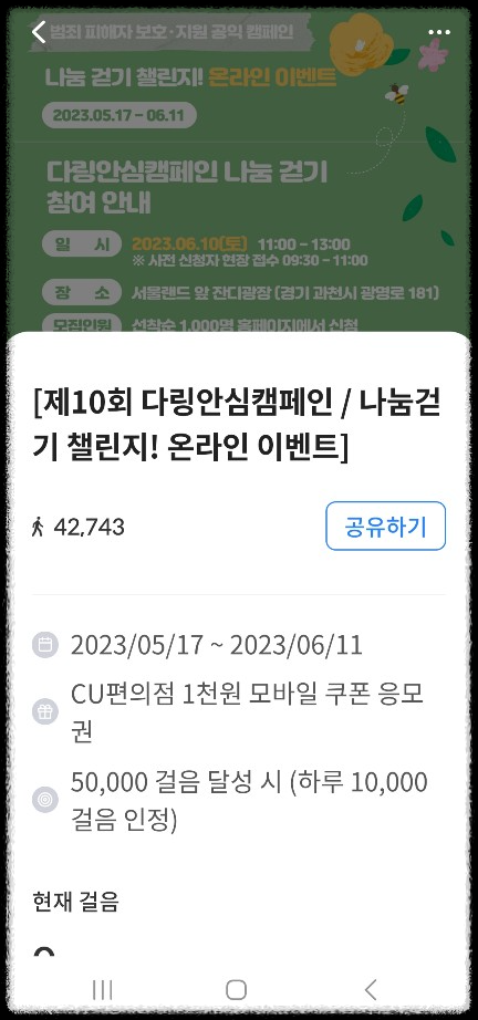 참여방법: 하루 최대 10,000 걸음 인정되고 50,000 걸음 달성